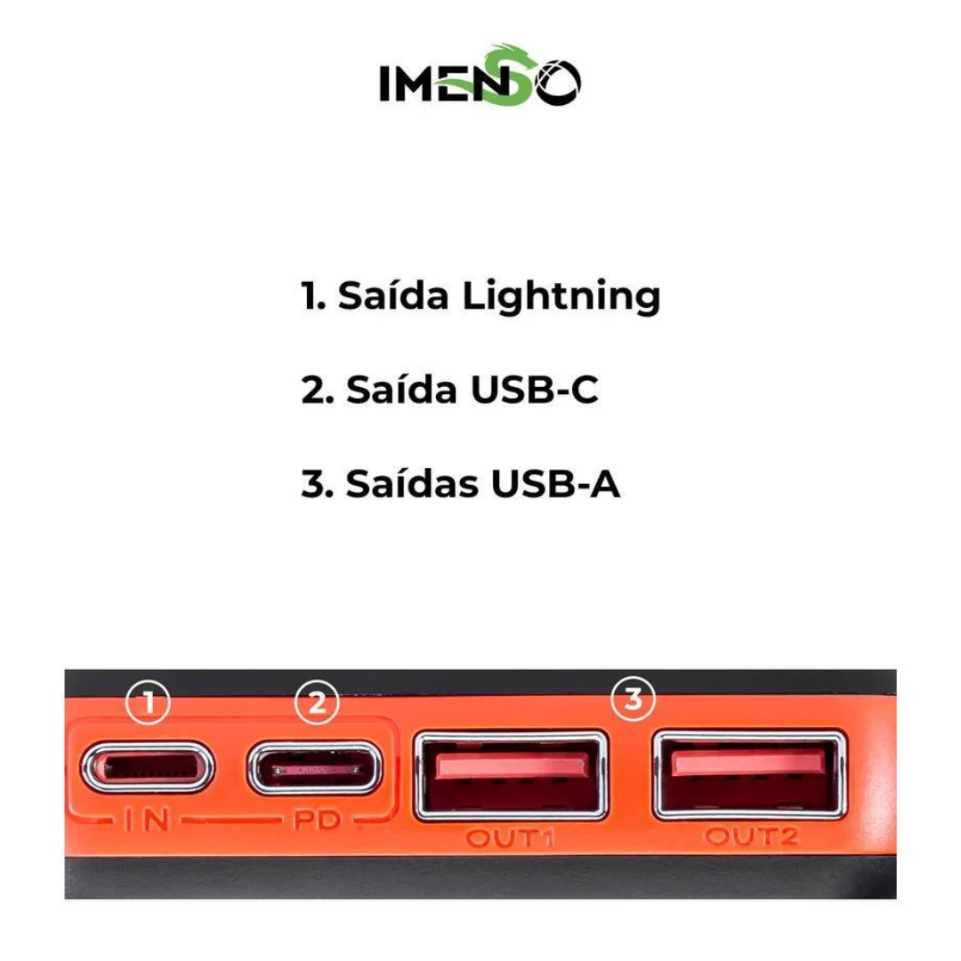 O Power Bank Imenso IMS610D é ideal para quem precisa de muita bateria, carregamento rápido e praticidade no dia a dia.