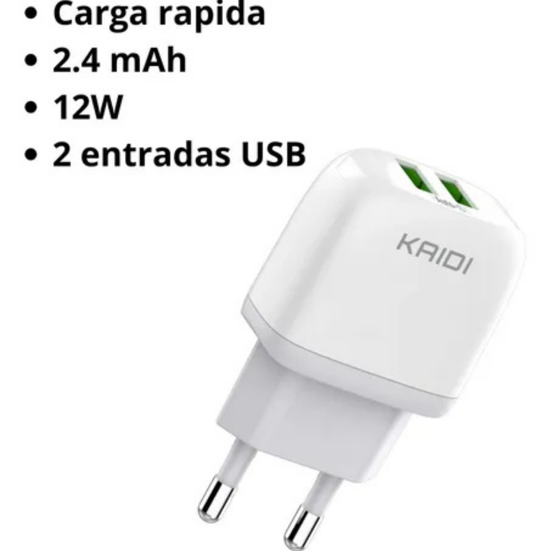 O Carregador Rápido Duplo USB Kaidi KD-556 é a solução ideal pra quem precisa carregar dois dispositivos ao mesmo tempo com rapidez, segurança e praticidade. ⚡